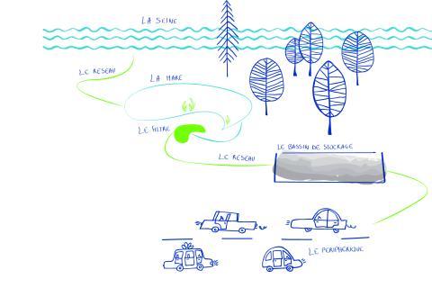 Based on ecological engineering, the Life Adsorb prototype combines “grey techniques” and “green techniques”. It includes storage of the water to be treated in existing sanitation infrastructures.