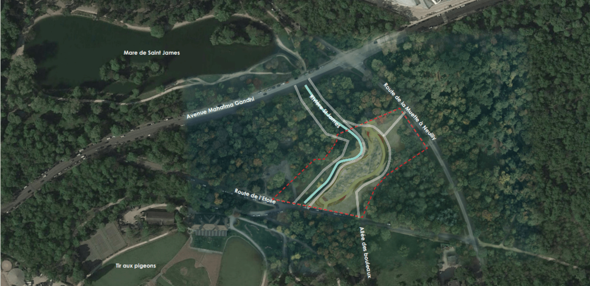 Tout comme l’ensemble du bois de Boulogne, la zone de projet se situe en zone « naturelle ou forestière » du Plan Local d’Urbanisme (PLU) de la ville de Paris et constitue également un espace boisé classé.